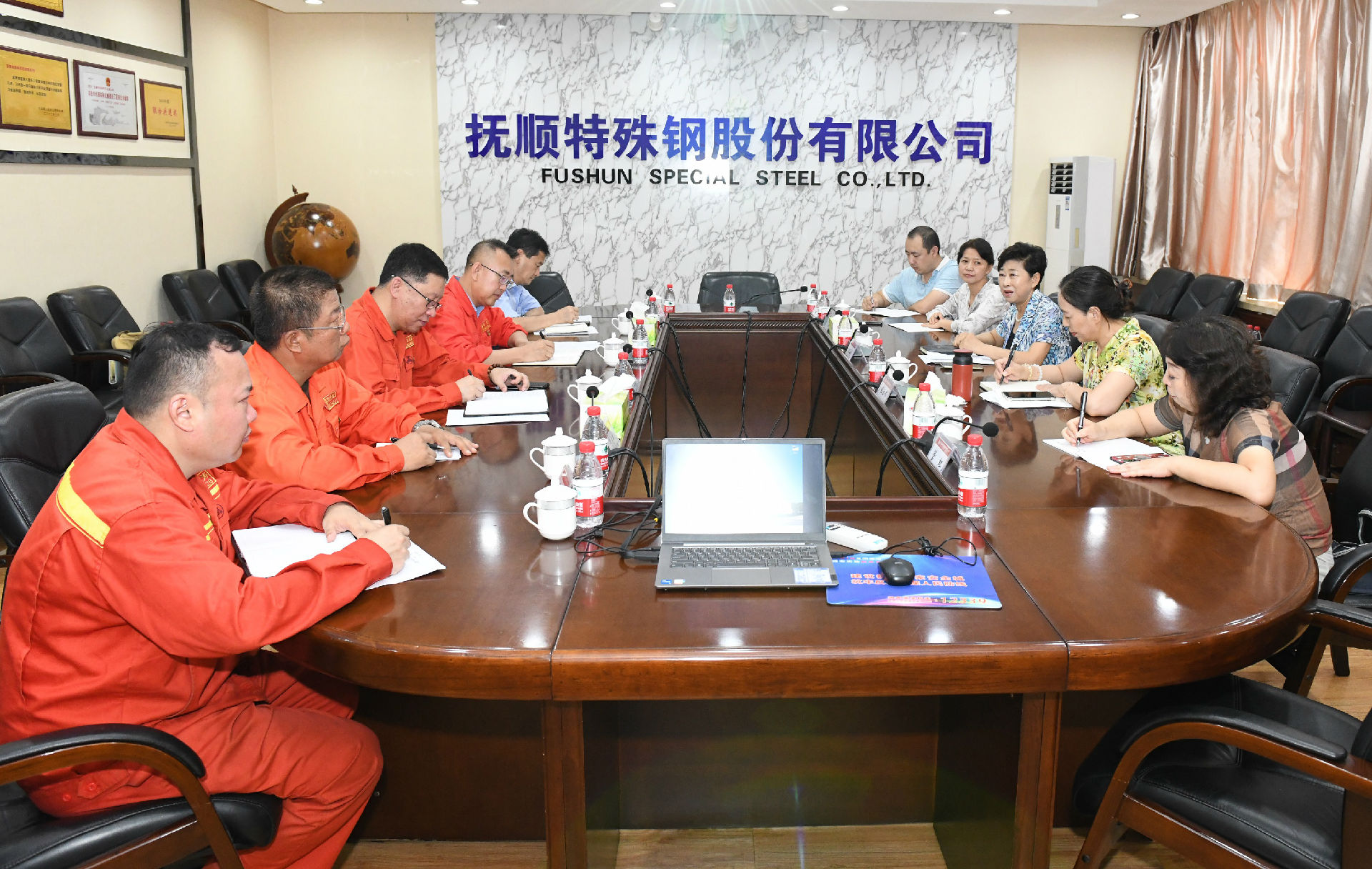 在公司1號(hào)會(huì)議室,祁勇對(duì)王玉霜一行的到來(lái)表示歡迎,并感謝市總工會(huì)多年來(lái)對(duì)撫順特鋼的大力支持和幫助。他向客人介紹了公司近期生產(chǎn)經(jīng)營(yíng)及工會(huì)工作開展情況,并就勞模創(chuàng)新工作室、員工培訓(xùn)、企業(yè)文化建設(shè)等方面工作進(jìn)行了匯報(bào)。他說(shuō),撫順特鋼將繼續(xù)堅(jiān)持走“特鋼更特”的發(fā)展道路,以科技創(chuàng)新、工藝優(yōu)化為抓手大力提升和發(fā)展新質(zhì)生產(chǎn)力。公司工會(huì)將通過(guò)勞模創(chuàng)新工作室、員工培訓(xùn)基地等平臺(tái)加強(qiáng)技能人才培養(yǎng)工作,持續(xù)做好員工技能的“傳、幫、帶”,在全面振興新突破三年行動(dòng)中貢獻(xiàn)工人階級(jí)的智慧和力量。希望市總工會(huì)在員工培訓(xùn)、勞模工作室建設(shè)、工會(huì)經(jīng)費(fèi)的使用和返還等方面給予支持和幫助,助力企業(yè)高質(zhì)量發(fā)展。