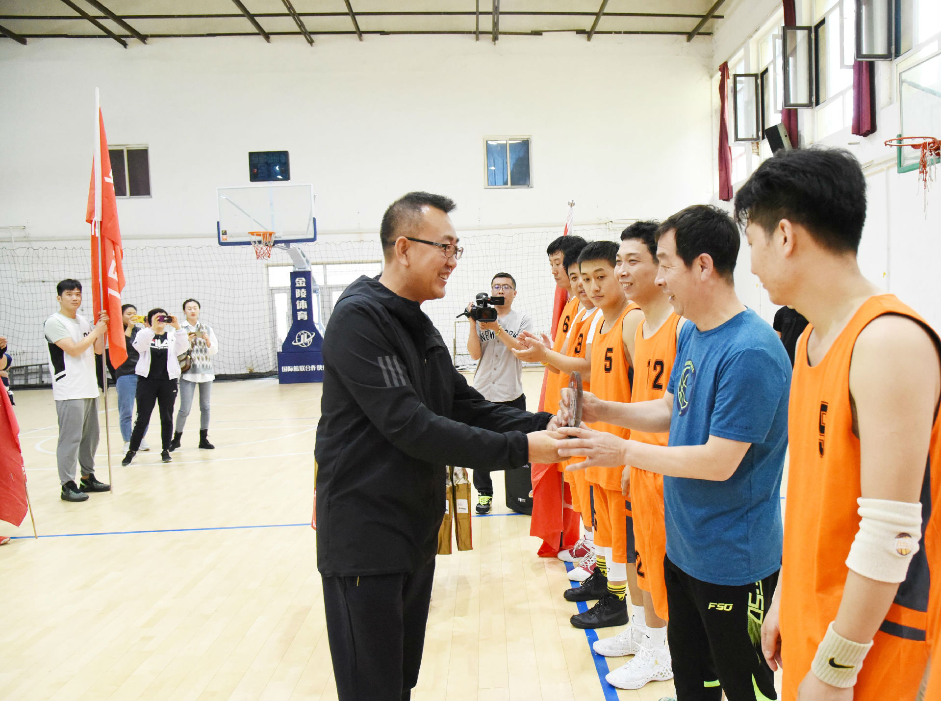 撫順特鋼常務(wù)副總經(jīng)理祁勇為獲得冠軍的第三煉鋼廠代表隊頒獎